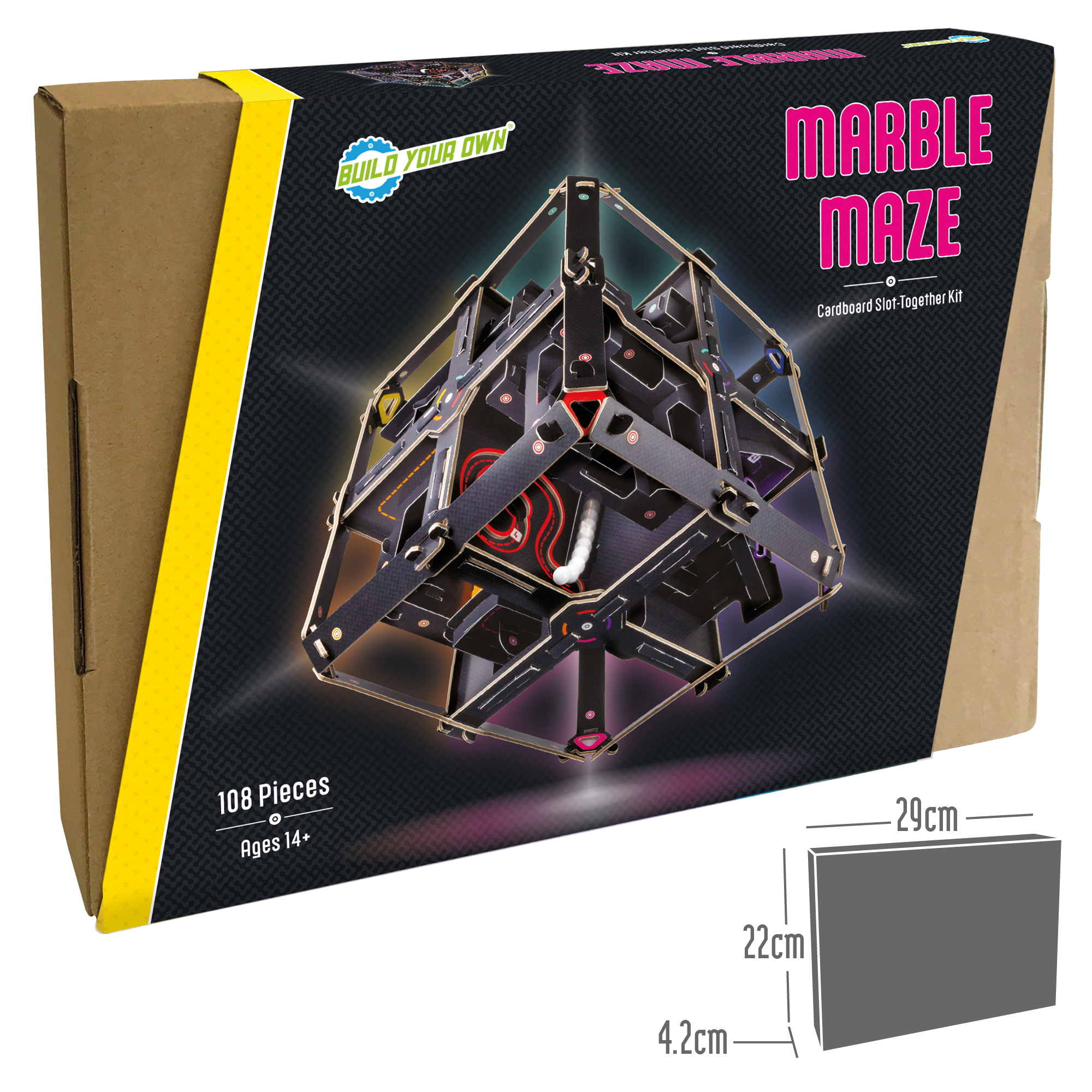 Build Your Own’s Marble Maze is made up of intricately designed slot-together cardboard parts. Whether you’re flying solo or teaming up with a mate, the step-by-step instructions are spread across 3 booklets so that sections can be built independently or collaboratively.