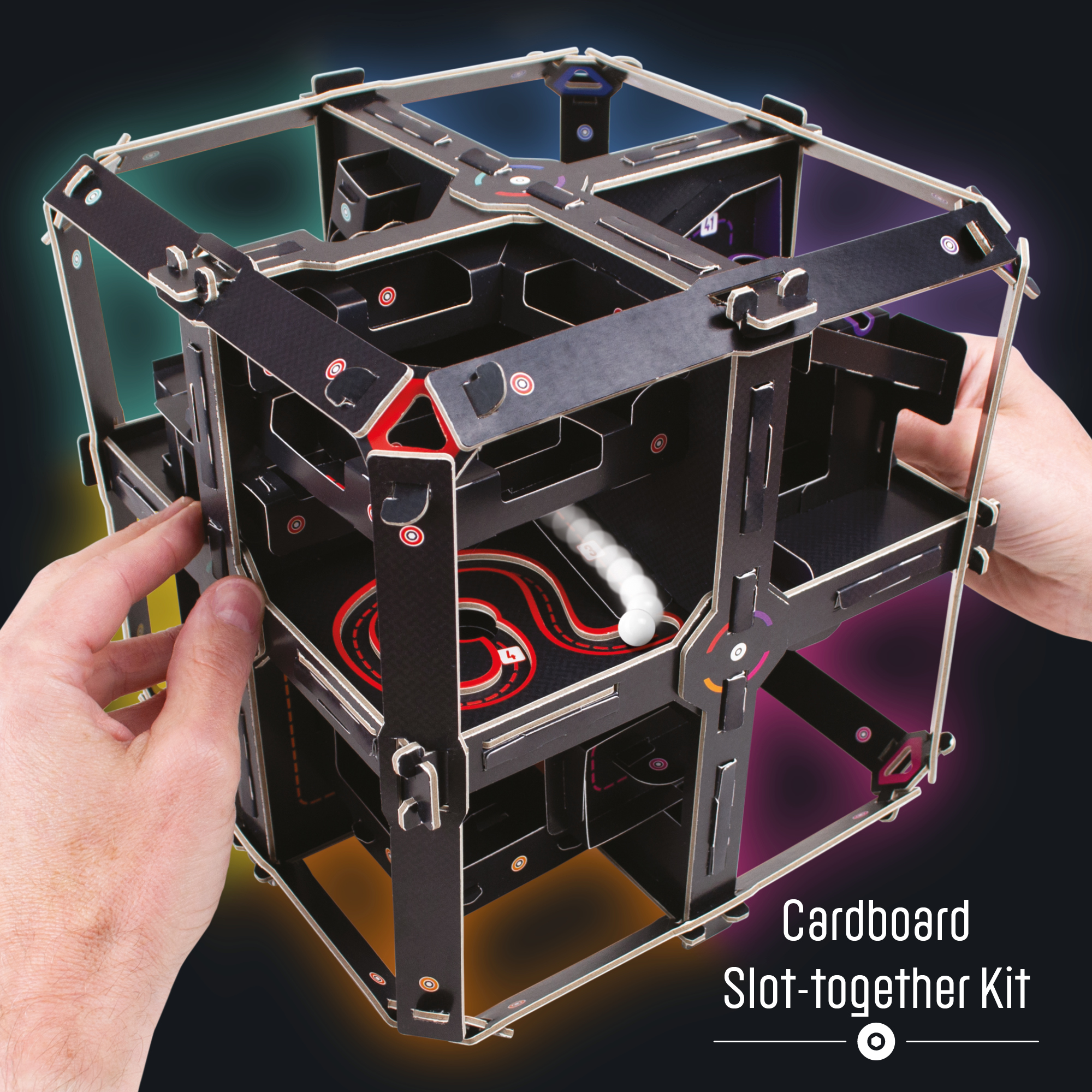 First, construct the 8 separate maze cubes, then interlock them to create your 3D puzzle masterpiece. Assembling the Marble Maze is a creative journey like no other, but the real challenge begins after you’ve built it.